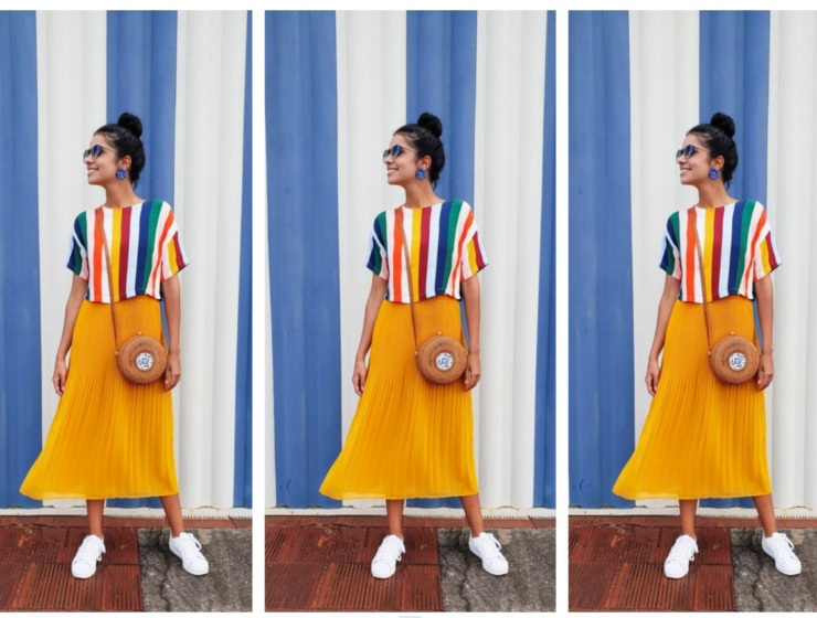 За овој петок резервиравме игрива и шарена комбинација. Расположени сме за плисирано здолниште во сончогледова…