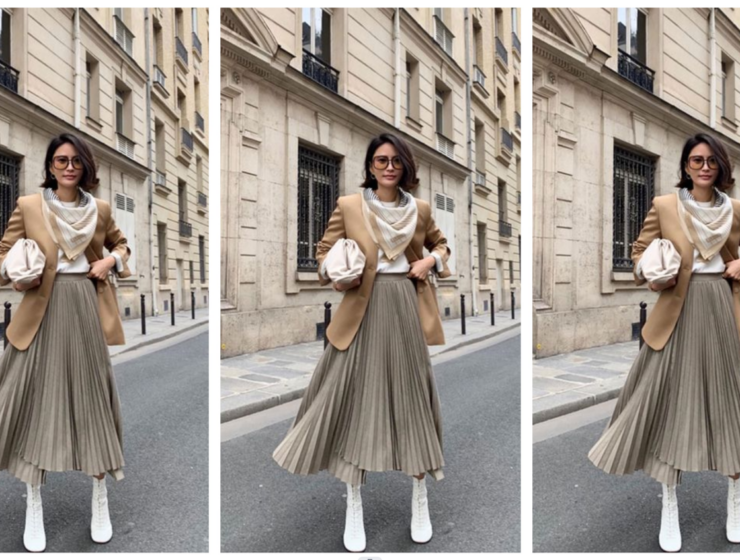 Вторничкиот стајлинг го резервираме за земјените тонови. Предложуваме плисирано здолниште во бојата на костенот, а…