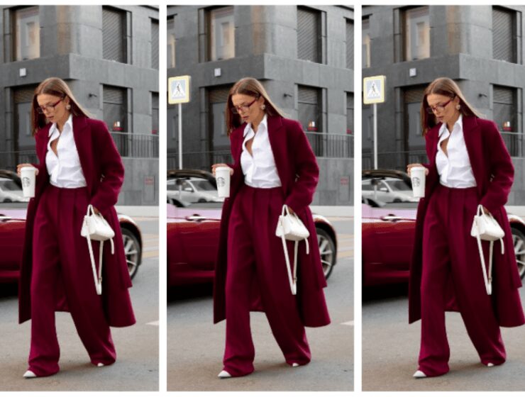 Четврток е убав ден за елегантна бордо комбинација. Нашиот денешен предлог се широки бордо панталони…