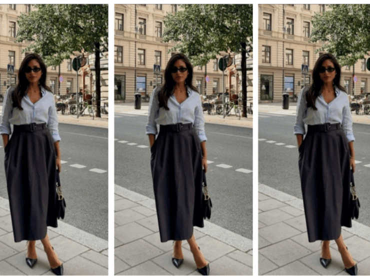 За овој четврток имаме урбан деловен стајлинг. Нашиот денешен предлог е темно сиво, макси здолниште…
