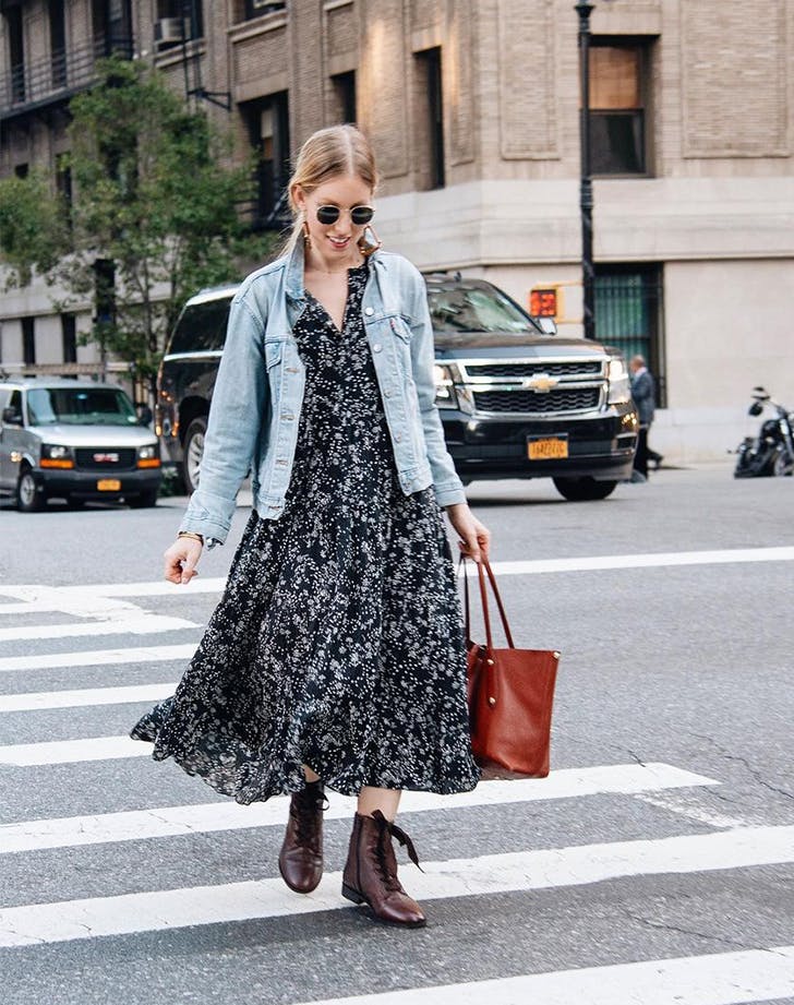 Ова е класична и секогаш модерна комбинација. Лесен цветен фустан комбиниран со тексас јакна создава опуштен, но стилски изглед.
