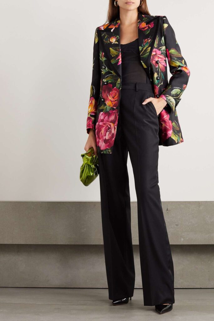 Цветниот блејзер е совршен за канцеларија или формални настани. Комбинирајте го со едноставни панталони или здолниште во неутрална боја за елегантен и модерен изглед.