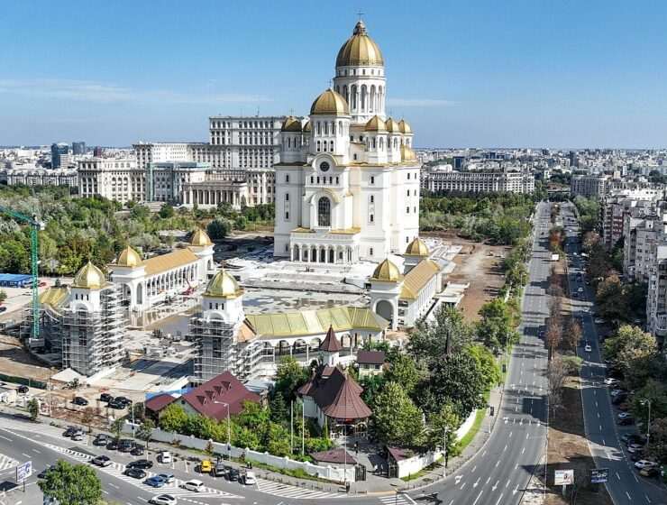 На врвот на Спиреевата Кула, зад моќната Палата на Парламентот во Букурешт, Романија, се издига…