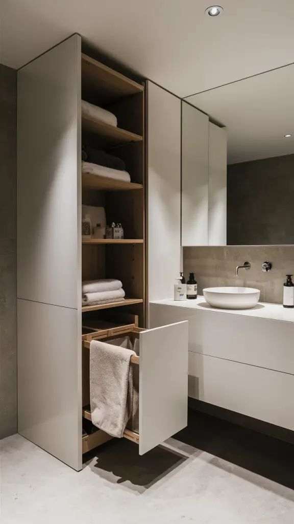 Практичен совет: Користете отворени полици, ѕидни држачи и корпи за пешкири и козметика.