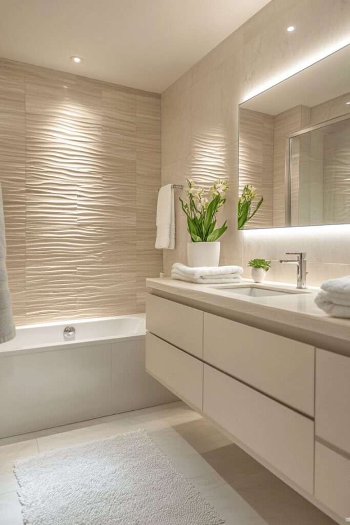 Практичен совет: Акцентот зад мијалникот или во туш зоната е доволен за стилски ефект.