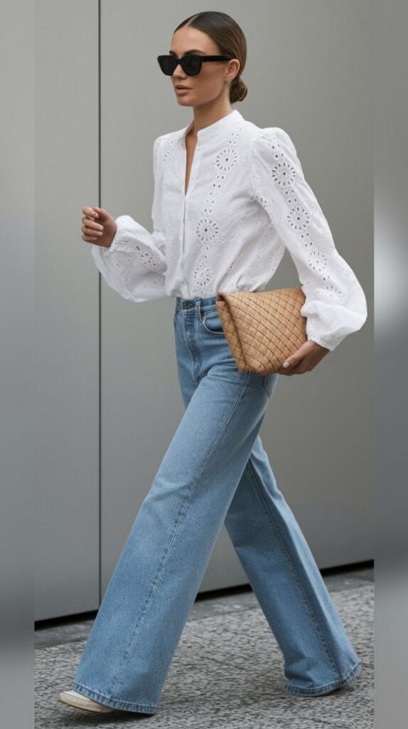 Белата кошула е идеална и за слоевито облекување. Може да се носи под џемпер, преку маичка како лесна јакна или врзана на половината за модерен, опуштен изглед.