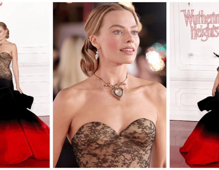 Марго Роби уште еднаш потврди дека знае како се носи вистинскиот холивудски гламур. На премиерата на „Wuthering Heights“, таа зачекори на црвениот тепих во фустан на Скијапарели со драматична силуета во омбре…