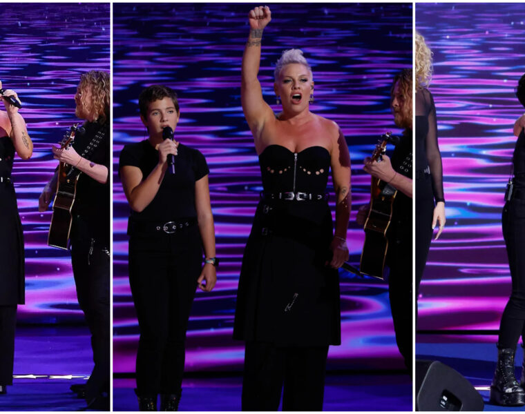 Пејачката Пинк вчеравечер имаше настап во склоп на Демократската Национална Конвенција (Democratic National Convention) како дел од програмата за претстојните претседателски избори во САД во ноември. Но таа не настапи сама, туку…