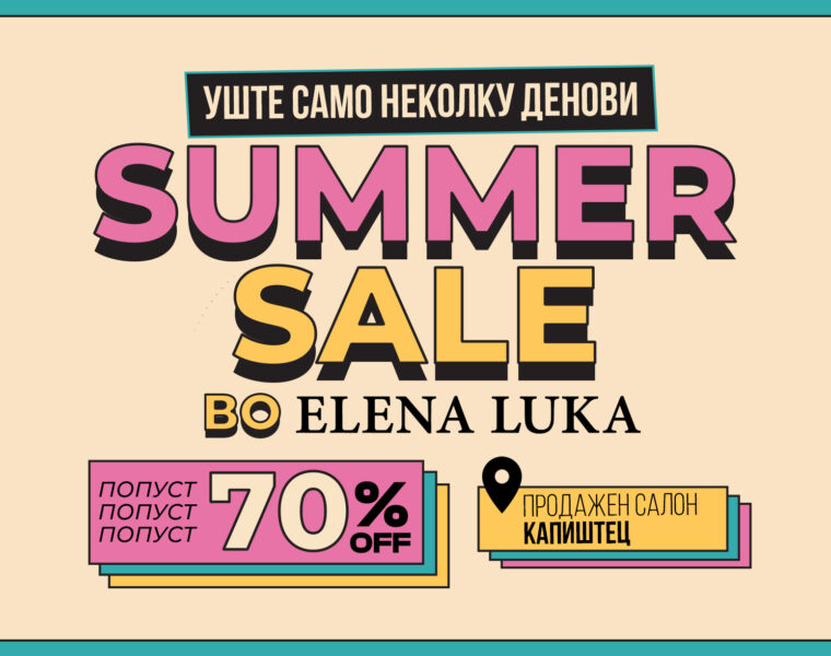 Модниот бренд ЕЛЕНА ЛУКА летово имаше голема распродажба на целиот летен асортиман во својот продажен салон во Капиштец. Акцијата се одвиваше секоја среда и имаше големи попусти кои достигнуваа и 70% од…