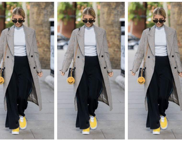 Последниот работен ден од оваа недела го започнуваме со широки црни панталони во комбинација со бела ролка. Вака стилизирани дополнуваме со долго карирано палто во сиво-песокливи нијанси. Финишираме со жолти патики и…