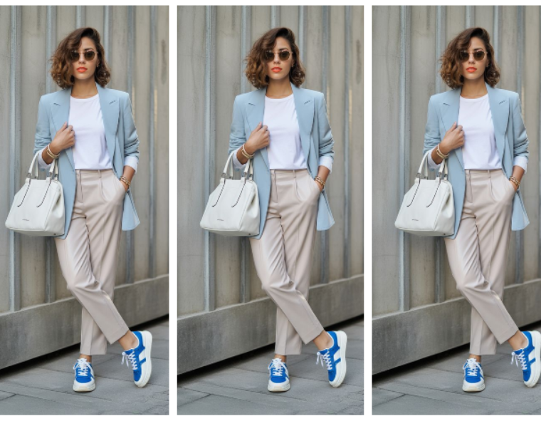 За овој вторник резервираме свеж пролетен стајлинг. Спојуваме беж панталони и бела блуза, во комбинација со блејзер во светло сина нијанса. Дополнуваме со бело-сини патики, а финишираме со крем чанта. Имајте убав…