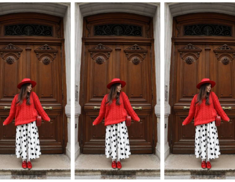 За овој празничен четврток предложуваме бело, макси здолниште со точки и црвен џемпер. Вака стилизиразни додаваме црвени чевли и шешир во иста боја. Финишираме со црвена чанта. Ви посакуваме убав ден.