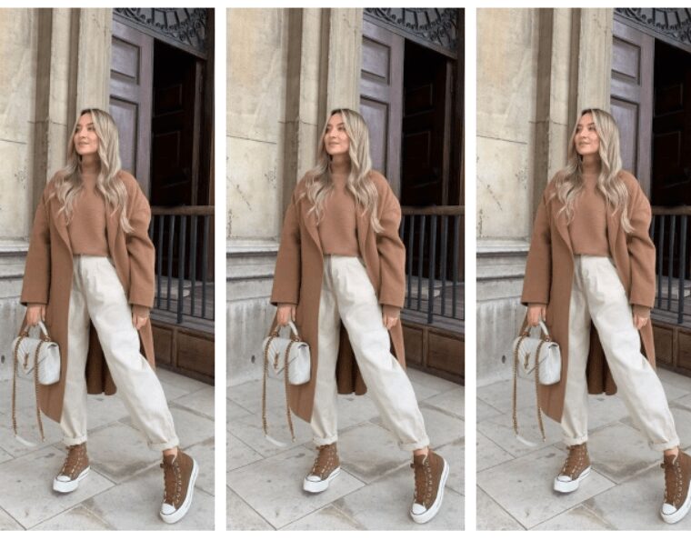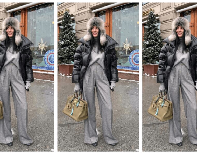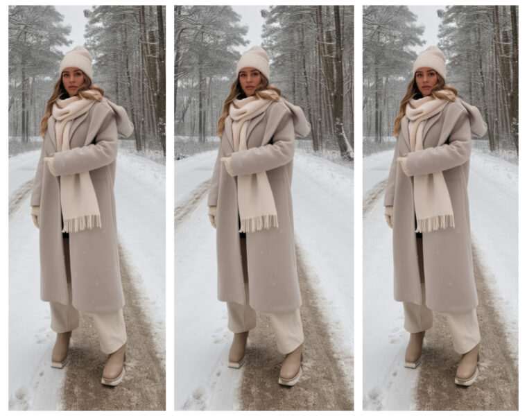 Овој шик стајлинг комбинира елеганција и удобност и е совршен за снежните денови. Меката капа и шал во крем нијанса внесуваат топлина, додека долгото палто со капуљача додава класична софистицираност. Панталоните во…