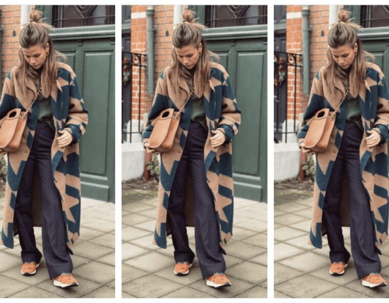 Работната недела ја започнуваме со класичен џинс на којшто додаваме светло сина кошула. Како дополнување имаме макси кафеав капут и патики во бордо-кафена нијанса. Стајлингот го заокружуваме со чанта во анимал принт…