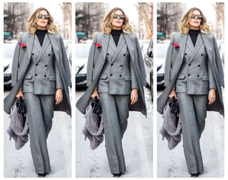 Стајлингот е совршен спој на елеганција и самоувереност. Сивиот костум со двојно закопчување зрачи со класична софистицираност, додека капутот ненаметливо поставен врз рамениците додава лежерна нота на целокупниот изглед. Црната ролка создава…