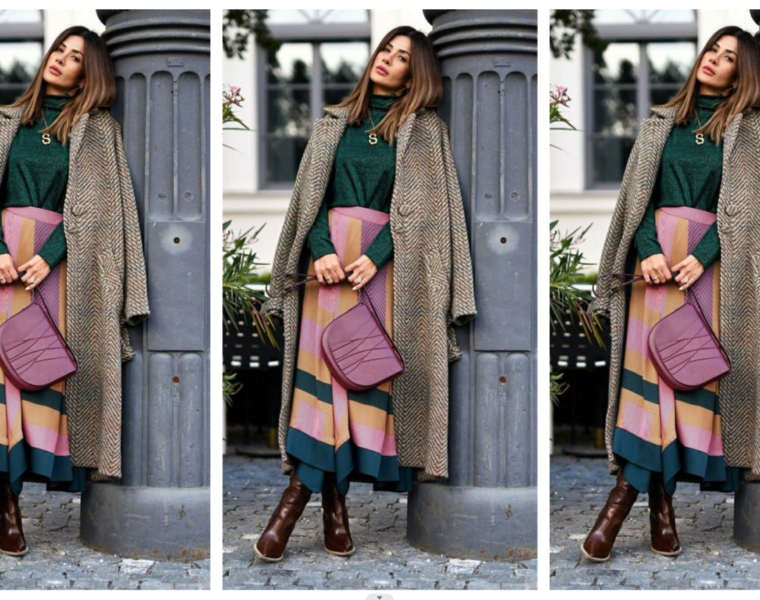 Овој четврток ви носиме комбинација во боја. Предложуваме зелена блуза која што ја спојуваме со макси здолниште во зелена портокалова и розево-виолетова нијанса. Вака стилизирани дополнуваме со долг сиво-кафеав капут и кафени…