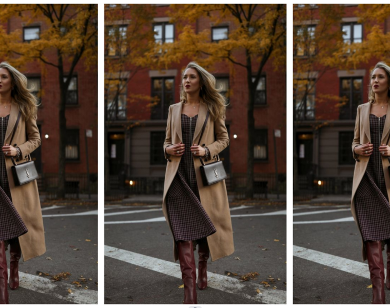 Петок, како ден пред викенд го резервираме за кариран, миди фустан во сиво-бордо нијанса, со патент во предниот дел. Фустанот го комбинираме со капут во беж боја и бордо чизми до колена.…