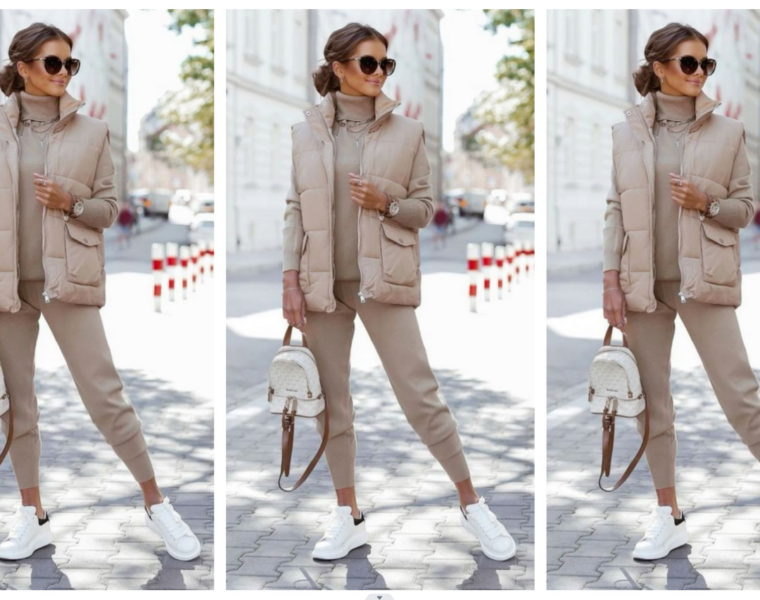 За овој четврток имаме беж комбинација, неутрална боја што прилега на секој. Нашиот предлог е спортска варијанта – ролка, елек и комотни панталони. Беж парчињата ги спојуваме со бели патики и ранче…