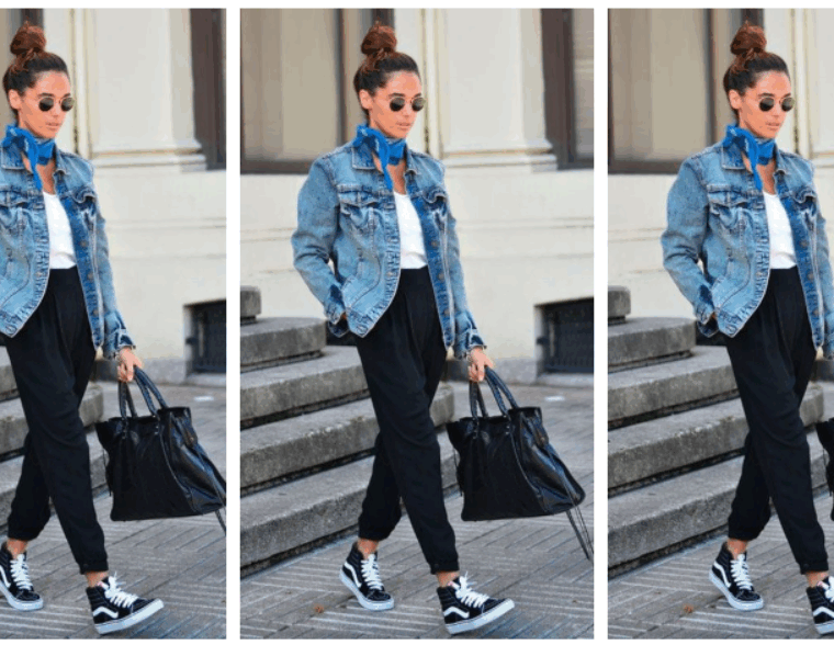 Четврток е ден за тексас јакна во комбинација со црни панталони. Стајлингот го дополнуваме со бела маичка и црно бели патики над глужд. Финишираме со голема црна чанта и разигруваме со сина…