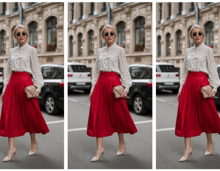 Среда е ден за широко, миди, црвено здолниште во комбинација со бела кошула на точки. Елегантно и женствено издание како за средина на работната недела. Стајлингот го дополнуваме со беж потпетици и…