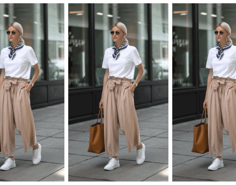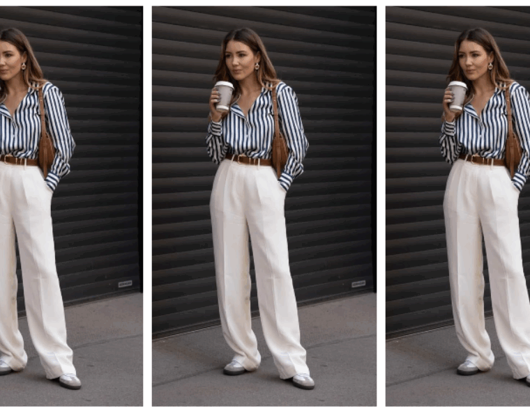 Првата работна недела од месец јуни ќе ја започнеме со широки беж панталони со каиш во форма на машничка. Панталоните ќе ги споиме со бела маичка на кратки ракави. Дополнуваме со бели…