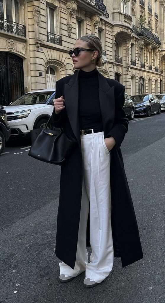 Четврток е за црно бела комбинација Четврток е за црно бела спојка, а нашиот денешен предлог се бели панталони и црна ролка. Комбинацијата ја дополнуваме со макси, црн капут и чанта во иста боја. Стајлингот го заокружуваме со сиво бели патики. Имајте убав ден. Previous Article Модна офанзива: Ремените се новите привезоци за чанти Next Article Роден во 1949, бесмртен во 2026: Тајната на Диор- „Junon“