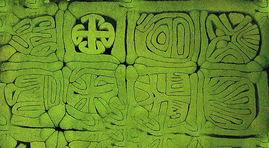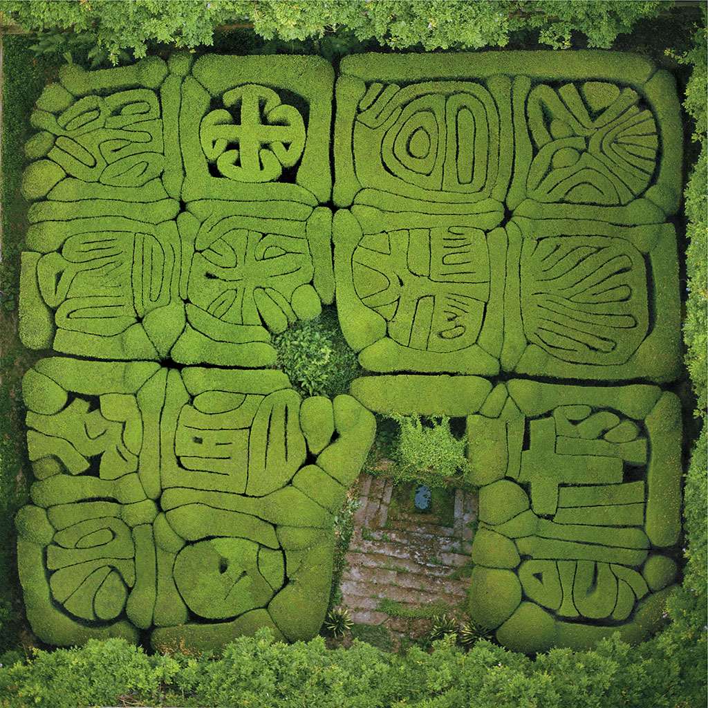 Во срцето се наоѓа градина од шимшир, вешто потстрижен во декоративни форми што со текот на годините се претвориле во необични хиероглифи, чие значење денес тешко може да се протолкува.
