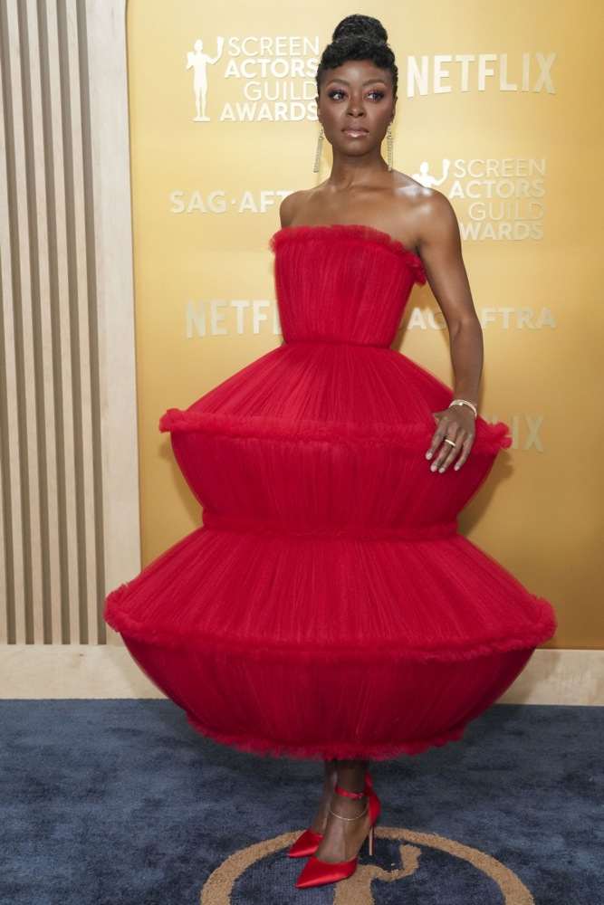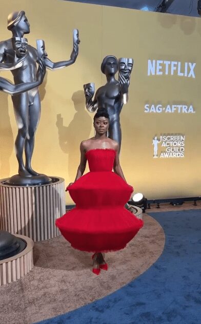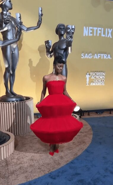 Еден од изгледите кои привлекоа најголемо внимание на годинешните SAG Awards, беше оној на актерката Даниел Дедвајлер која се појави во храбра, авангардна црвена тоалета.