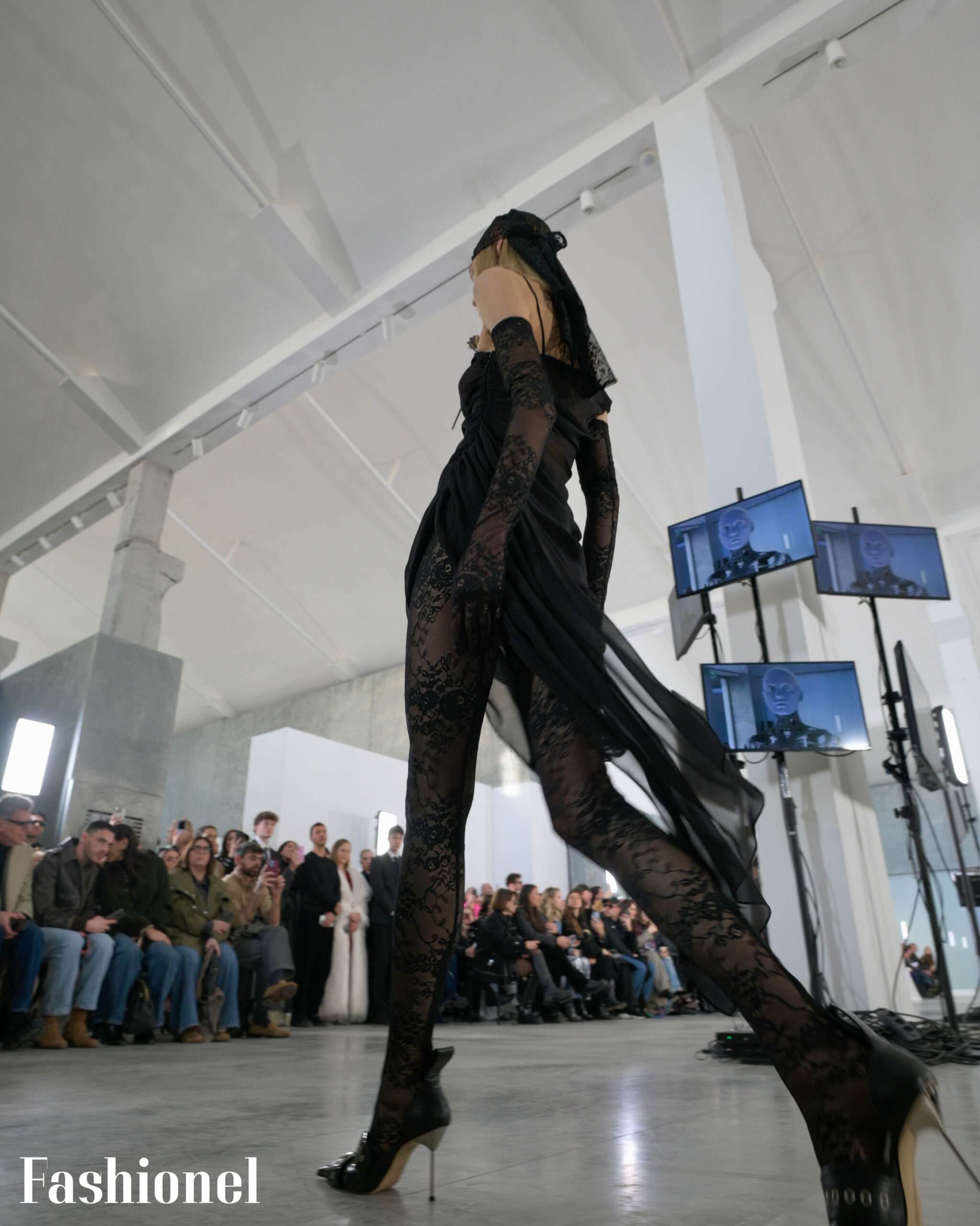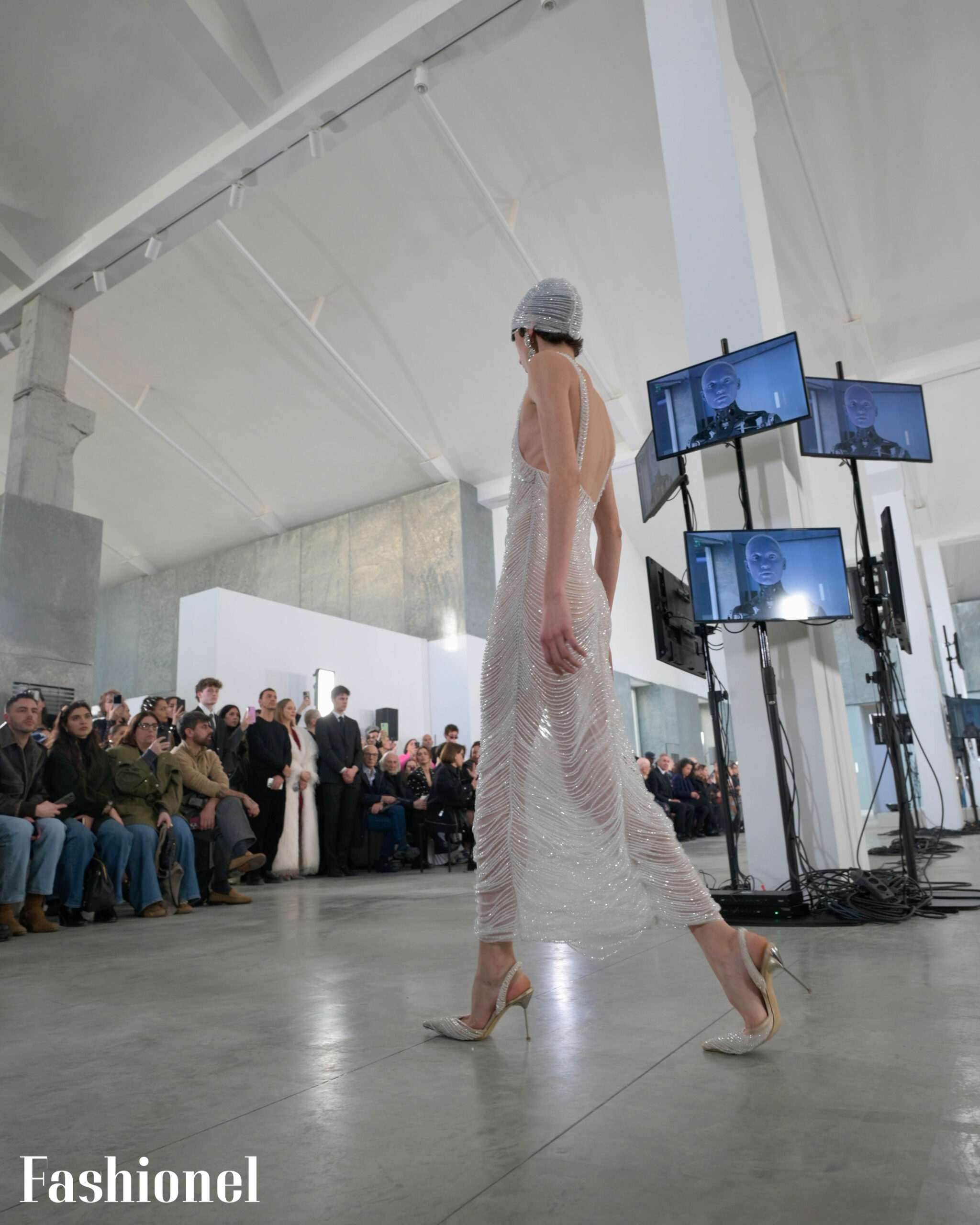 Но понекогаш, но и сè почесто, размислуваме за хуманоидноста, за човечноста и ранливоста, за дуалноста на постоењето и подемот на новите технологии. Па ќе се шокираме од роботот Амека кој е центар на ревијата за колекцијата на Giuseppe di Morabito, која насловена „Alone in the Stars“ посегнува по закопаните емоции кои се под површината низ интроспекција.