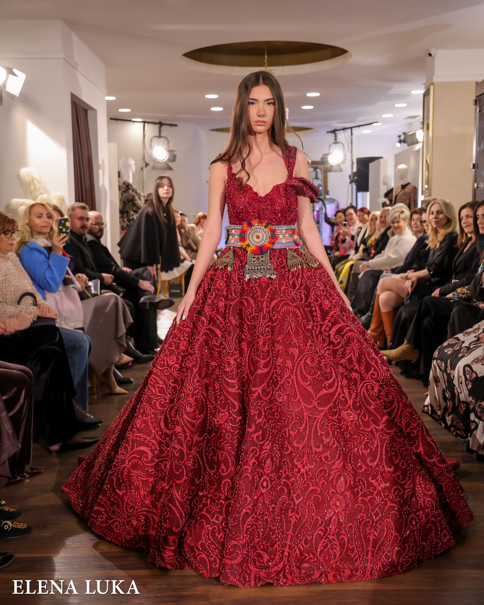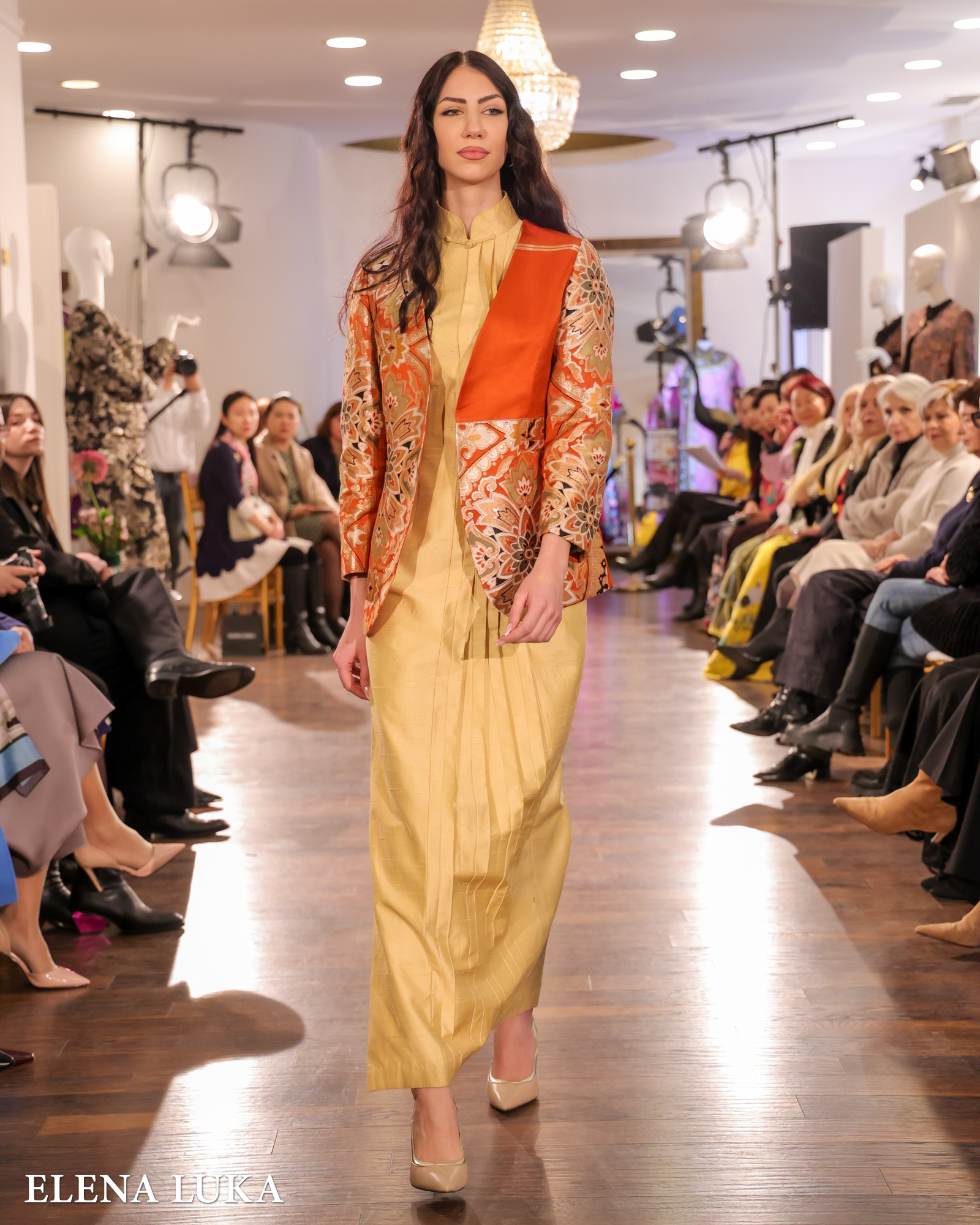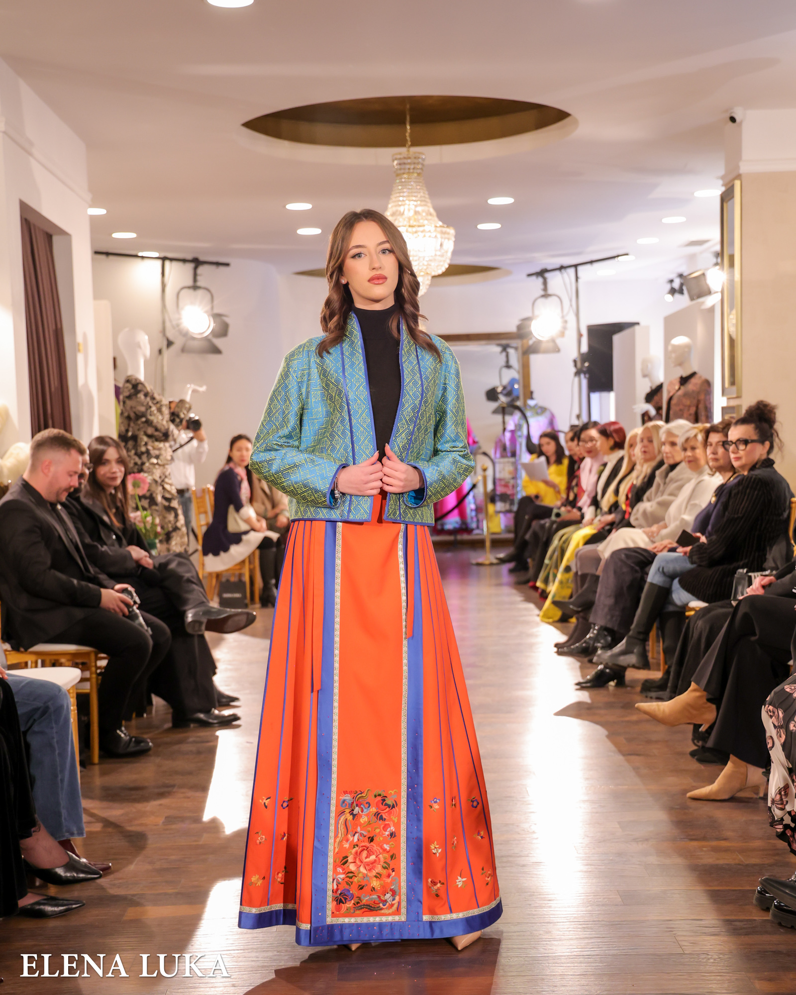 Кулминацијата следеше со појавувањето на ELENA LUKA – пет ексклузивни креации на висока мода кои ја носеа македонската традиција на едно ново, глобално ниво. Свилата повторно доминираше, но овој пат со македонски мотиви, рачна изработка и суптилна етно-инспирација која совршено се вклопи во ориенталниот контекст на вечерта.