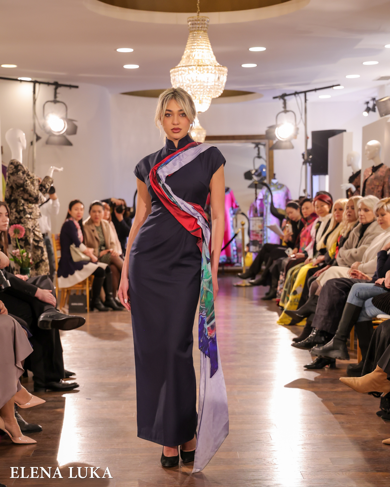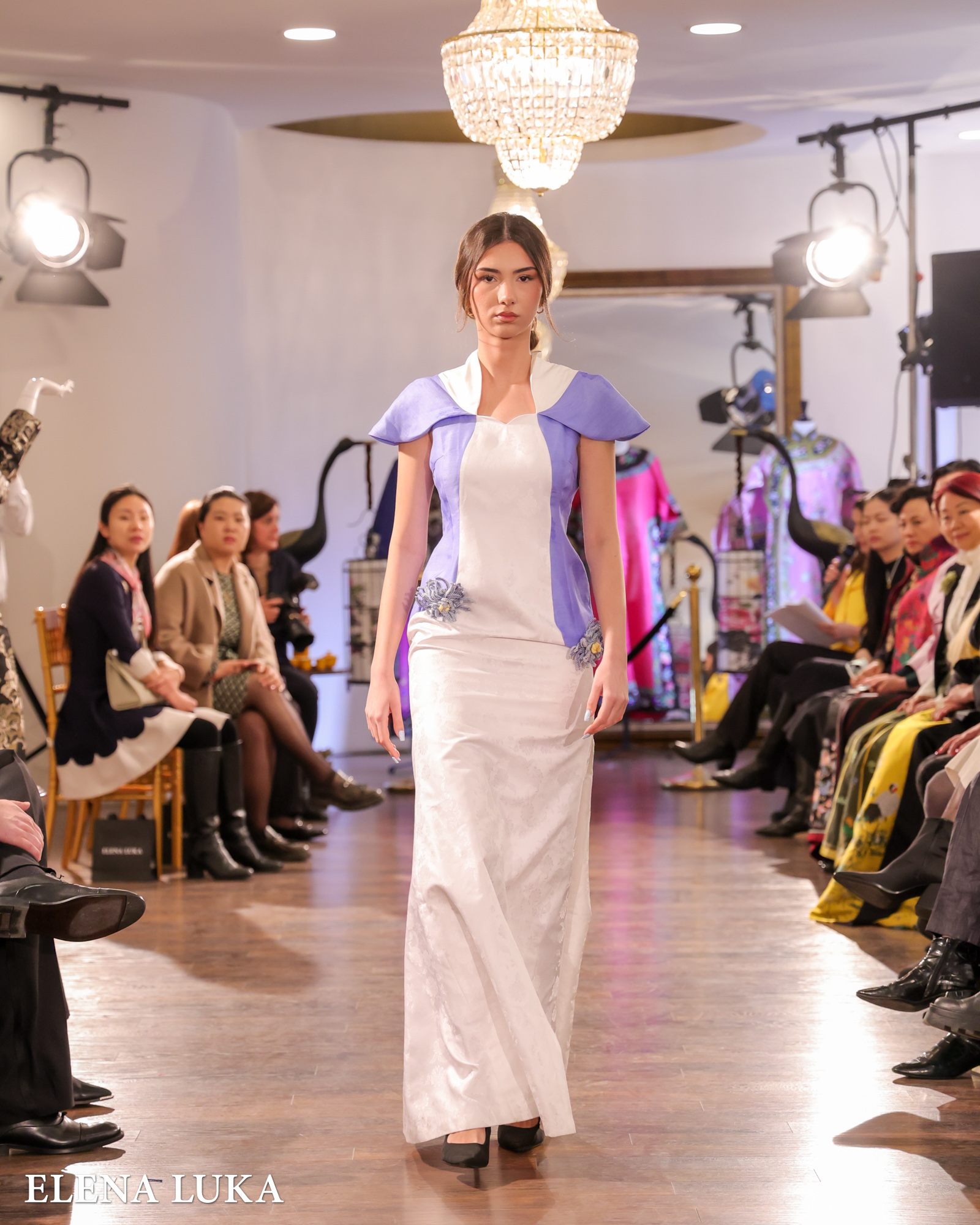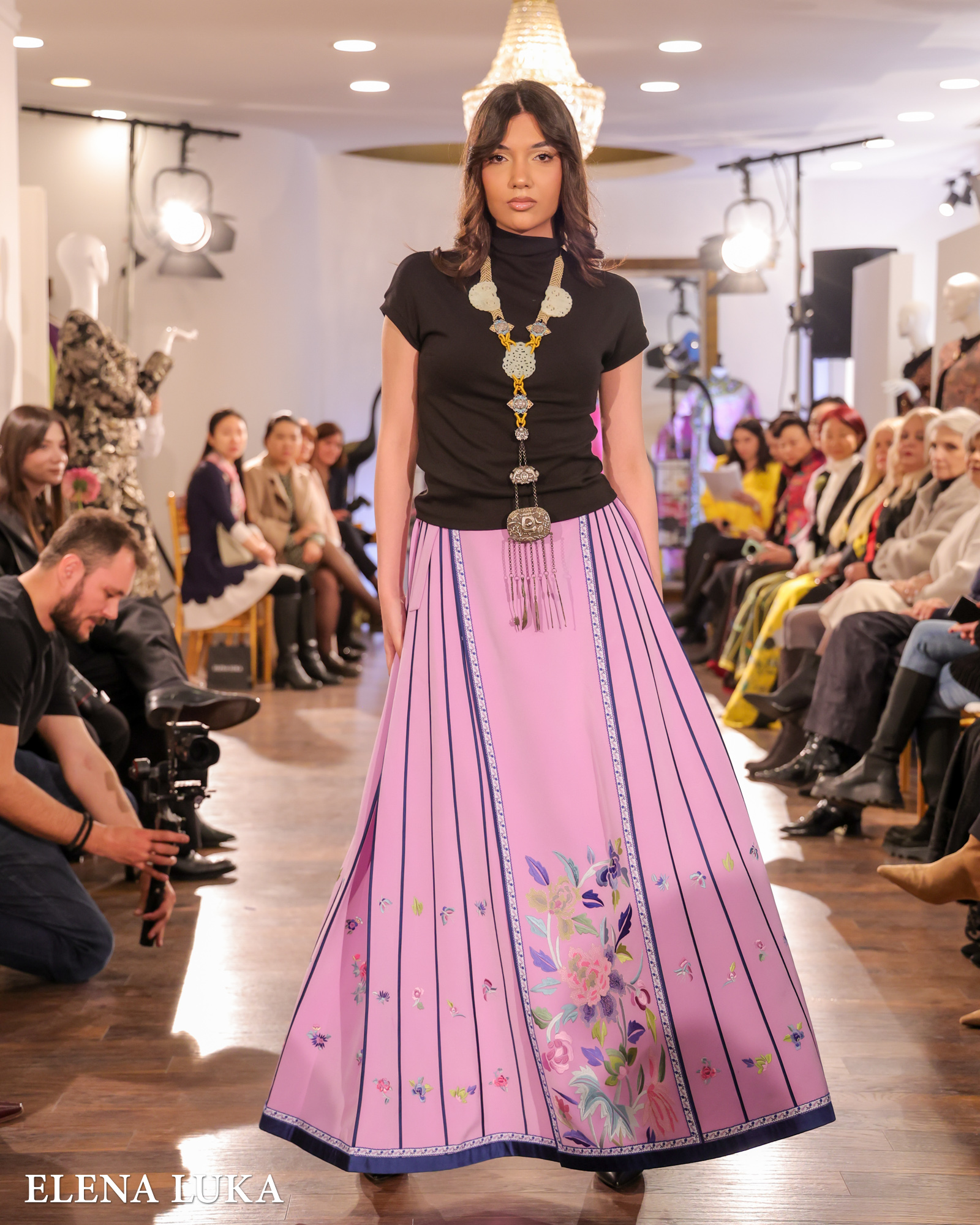 Кулминацијата следеше со појавувањето на ELENA LUKA – пет ексклузивни креации на висока мода кои ја носеа македонската традиција на едно ново, глобално ниво. Свилата повторно доминираше, но овој пат со македонски мотиви, рачна изработка и суптилна етно-инспирација која совршено се вклопи во ориенталниот контекст на вечерта.