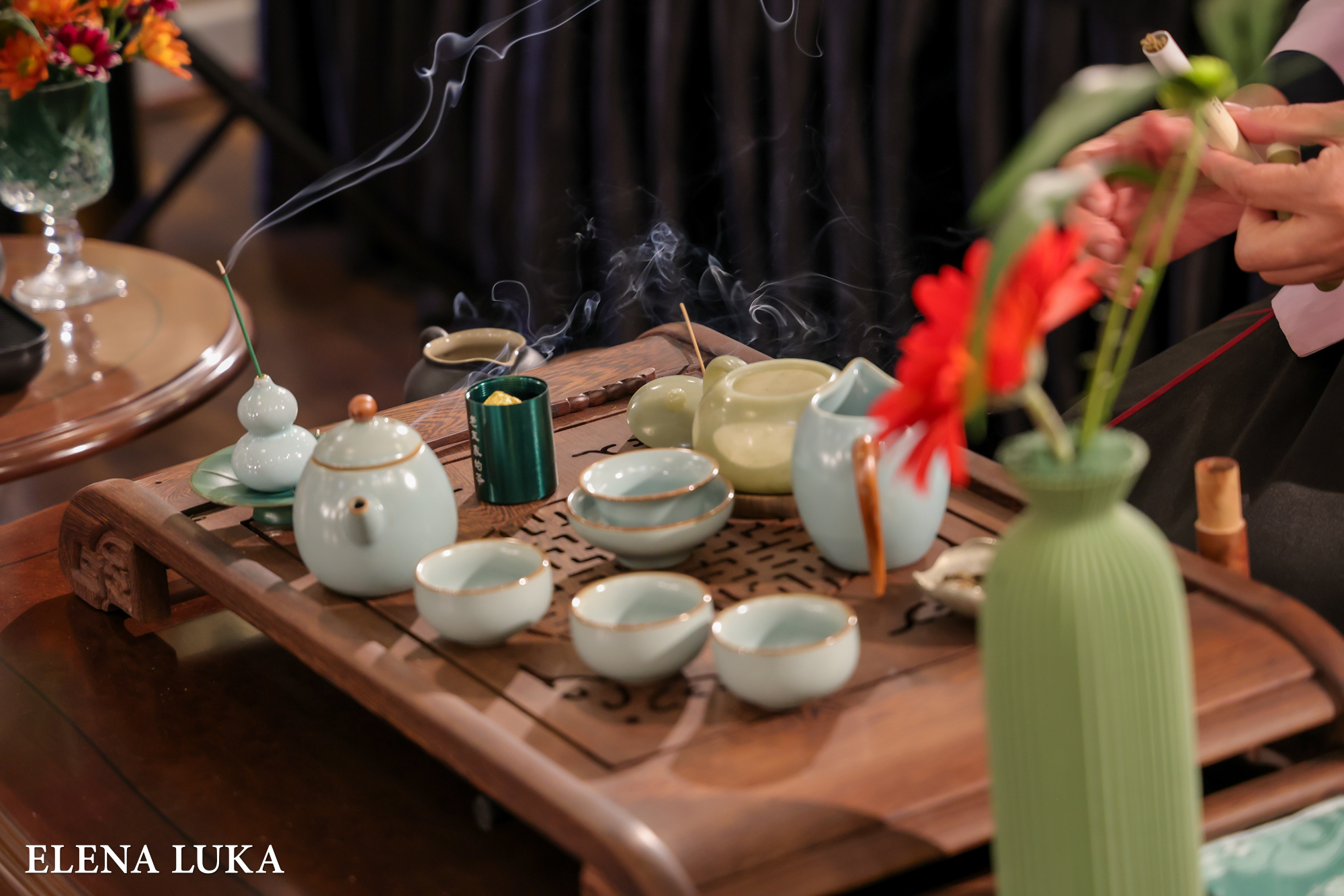 Мирисот на ориентот, суптилно распослан низ просторот преку внимателно одбрани ароми од Кина, создаде амбиент што ги водеше присутните низ едно несекојдневно сетилно патување.