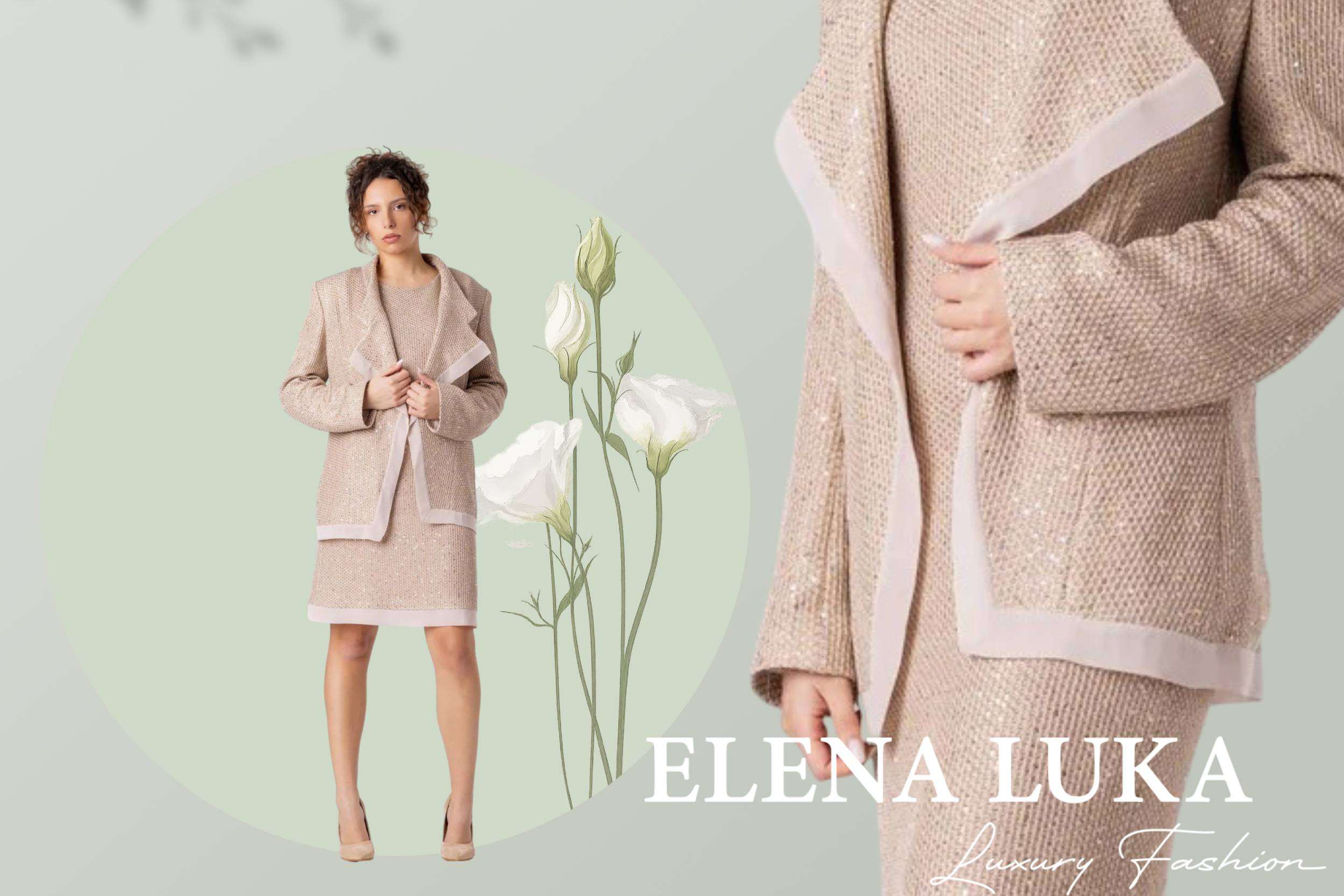ELENA LUKA останува синоним за прецизност, врвна изработка и јасна дизајнерска визија. Брендот со години гради препознатлив идентитет во кој секое парче не е само облека, туку внимателно конструирана форма, балансирана помеѓу естетика и функција. Комплетот LIORA го потврдува токму тоа, дека вистинскиот луксуз лежи во деталот, во структурата и во контролираниот минимализам.