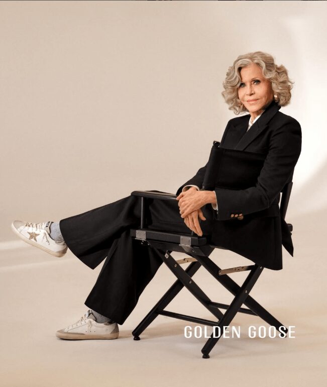 Jane Fonda, 87, proves that age has no effect on her. She exudes incredible charisma and energy, which is why she was chosen as the new face of the Italian brand Golden Goose.