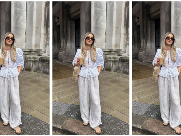 Today's Tuesday styling is romantic – cream wide-leg linen pants and a white shirt with…