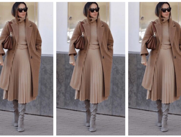 Today Thursday is a day for cappuccino tones. We suggest a pleated midi skirt and a turtleneck sweater in…