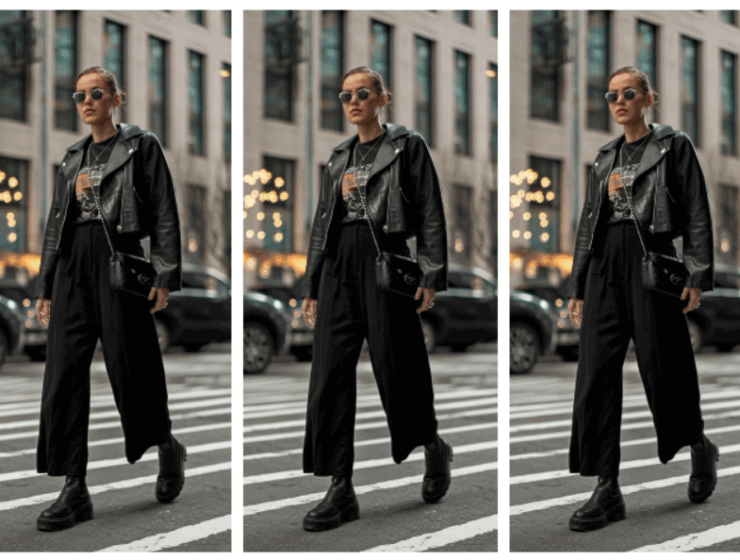 Денешниот вторник е резервиран за комбинација во црна боја. Нашиот предлог се црни, широки панталони…