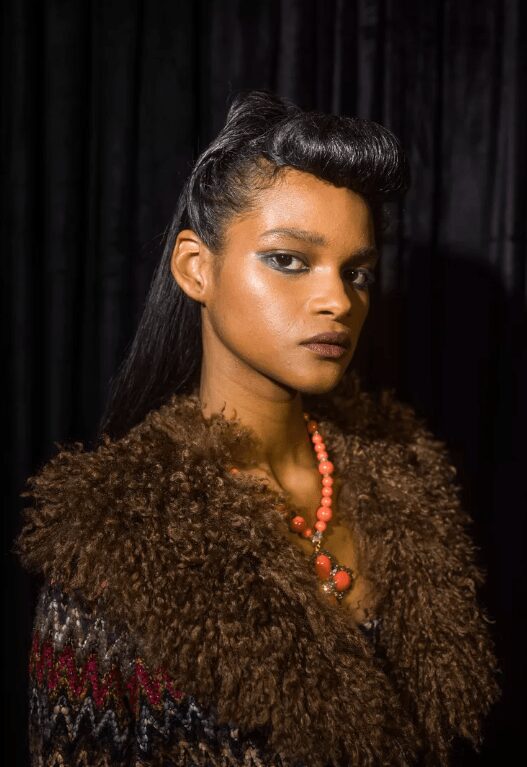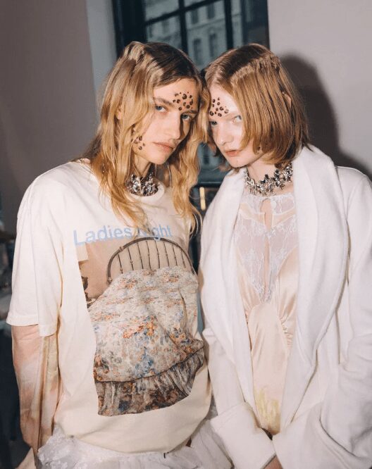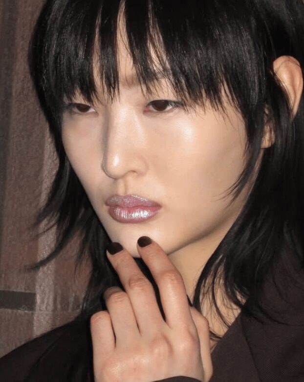 Matte skin and neutral tones were in focus. At Ulla Johnson, the makeup had a soft matte finish, and at Kim Shui, the eyes were in cold, blurry shades. Luar it combined retro vibes with club glamour.