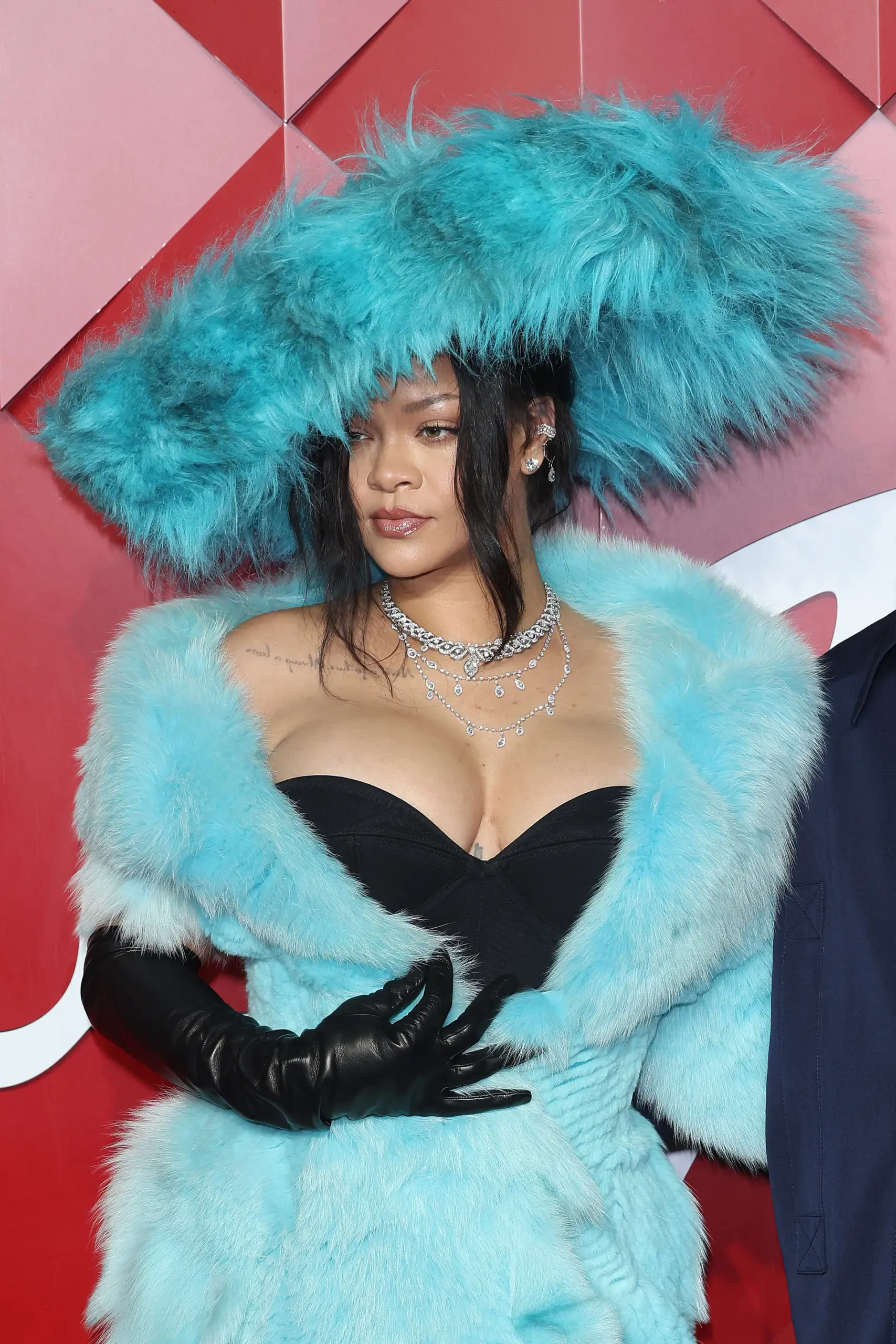 Rihanna left a special mark on the event, masterfully combining an unexpected style with blue fur, along with A$AP Rocky at Bottega Veneta.