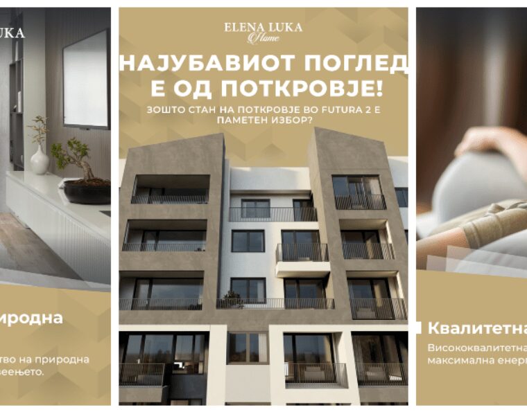 Доколку се уште не сте ја направиле вашата трајна животна инвестиција – купување на стан, реномираната компанија ЕЛЕНА ЛУКА ХОУМ има идеална понуда за вас во премиум станбено-деловниот објект ФУТУРА 2. На…