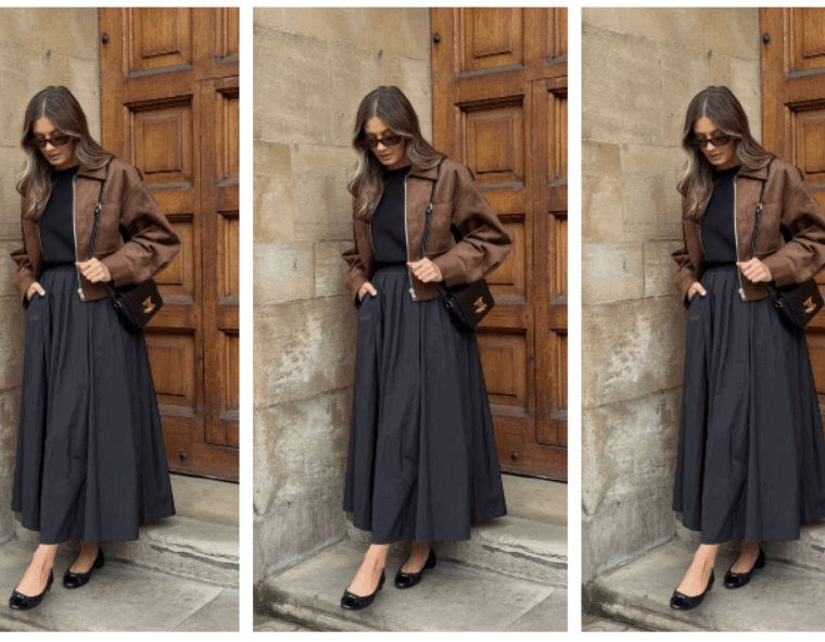 Последниот работен ден од оваа октомвриска недела го започнуваме со елеганција. Нашиот предлог е макси здолниште во пепелава нијанса во комбинација со црна блуза. Вака стилизирани додаваме кафеава кожна јакна и црни…