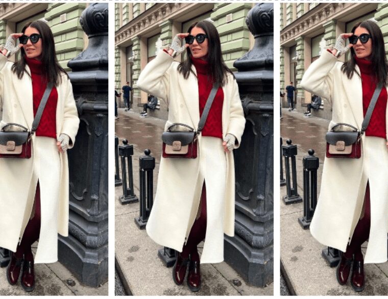 We start this work week with white pants combined with a black blouse – a timeless combination for any occasion. We complete the styling with black high heel boots and a beige coat. As…