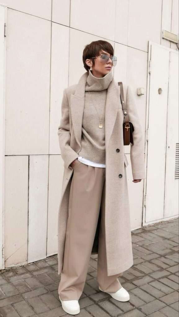 Thursday is the day for a full beige combination. This neutral color is a common choice in winter days, and we often wear it on multiple pieces.