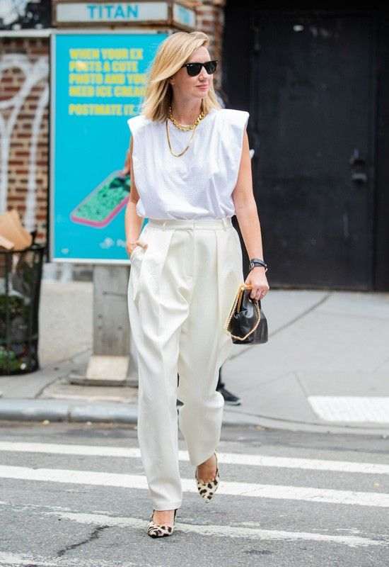 Денешниот четврток е резервиран за класични, кремави панталони во комбинација со бела блуза без ракави.