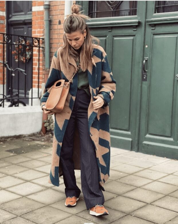 For this Thursday, we have striped pants in dark blue that we combine with an olive green sweater.