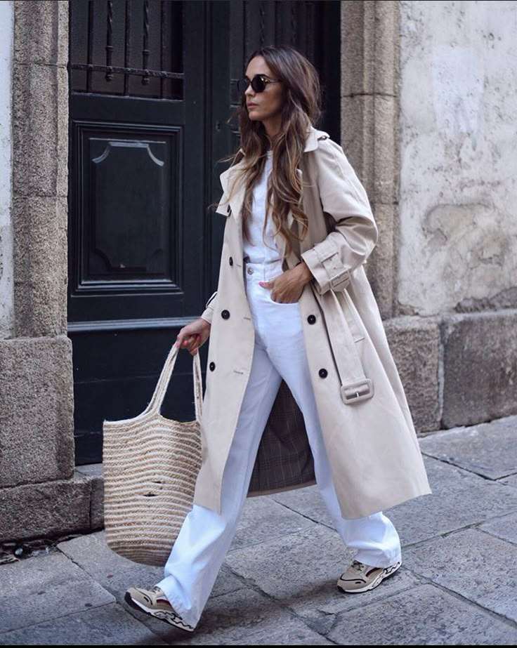 Овие две парчиња облека ги спојуваме со беж мантил којшто е must have за пролетниот период.