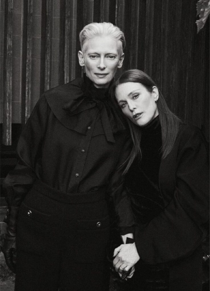 Swinton, who is known for her androgynous style, perfectly complements Moore's feminine charm, creating an artistic whole in which the two actresses tell the story together.
