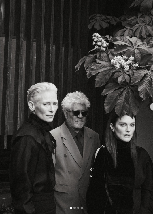The two successful actresses play the lead roles in the latest film by famous director Pedro Almodovar, titled The Room Next Door.