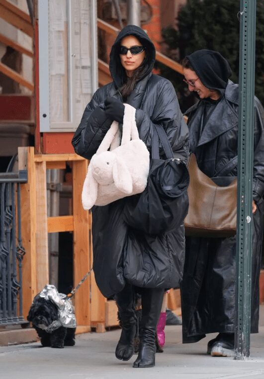 Irina Shayk, the queen of casual style, was spotted braving the cold in New York City with a style that turned comfort into high fashion. The supermodel appeared dressed all in black with a chic incognito look. She wore Maison Margiela leather boots, a cozy black sweatshirt, and to top it off, a sleeping bag-like jacket.