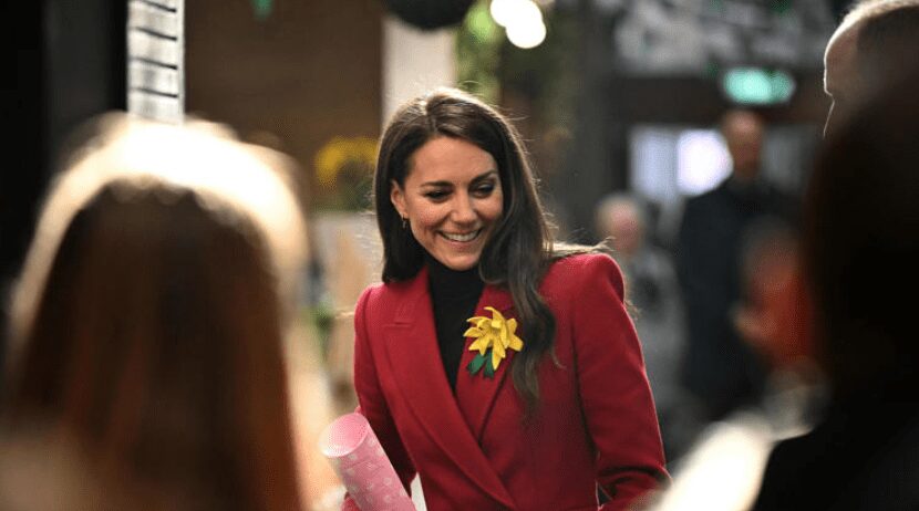 This is her first visit to Wales since announcing she was starting cancer treatment last year, and the fashion choices exude confidence and power. Red dominated the ensemble, symbolizing strength and determination, while details like the double-breasted collar and perfect cut added classic elegance.